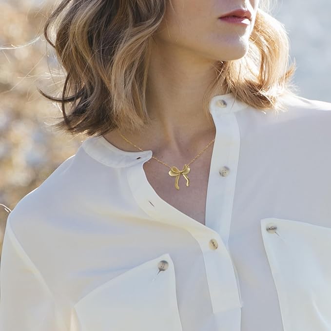 Der kleine und zarte Schleifenanhänger verleiht einen Hauch von Eleganz und ist perfekt für alle, die zierliche Halsketten für Frauen lieben.